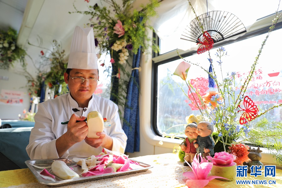用食材雕刻鲜花造型(1月14日摄)。新华网发(杨紫轩 摄)