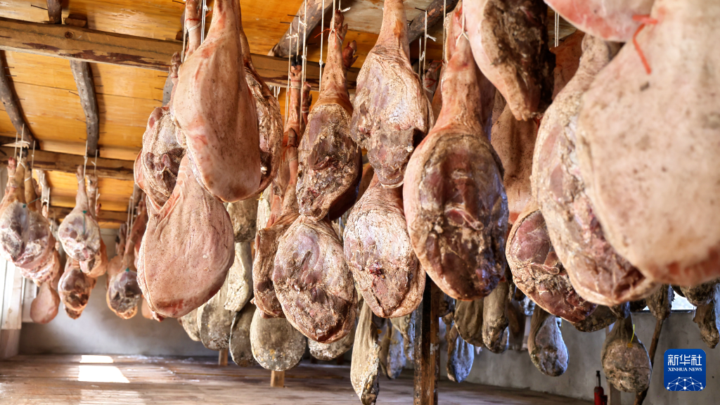 火腿代挂房里挂着的火腿。新华社发(李新平 摄)