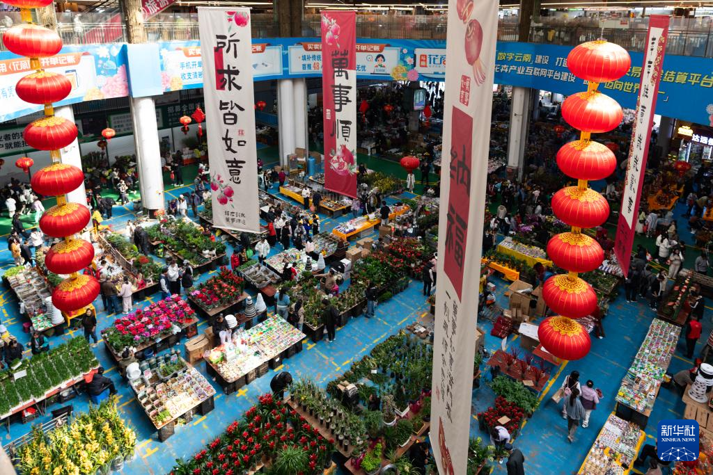 春节临近,云南昆明斗南年宵花迎来销售旺季。在昆明国际花卉拍卖交易中心内,一盆盆年宵花在台车上整齐排列,买家们争相竞价,热闹非凡。斗南花卉市场线下交易区人头攒动,市民和游客纷纷前来选购,为新春佳节增添喜庆氛围。同时,各电商平台上年宵花也热销不断,企业积极备货发货,将美好祝福送至千家万户。