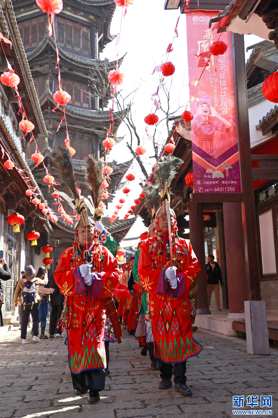 1月23日,云南省昆明市阳光和煦,近百名表演者身着盛装、载歌载舞,一场融合多民族特色的巡游活动在云南民族村开展。作为“彩云之南 春韵非遗”非遗贺新春系列活动之一,云南歌舞乐展演巡游活动将于1月23日至26日每日两次在云南民族村开展。
