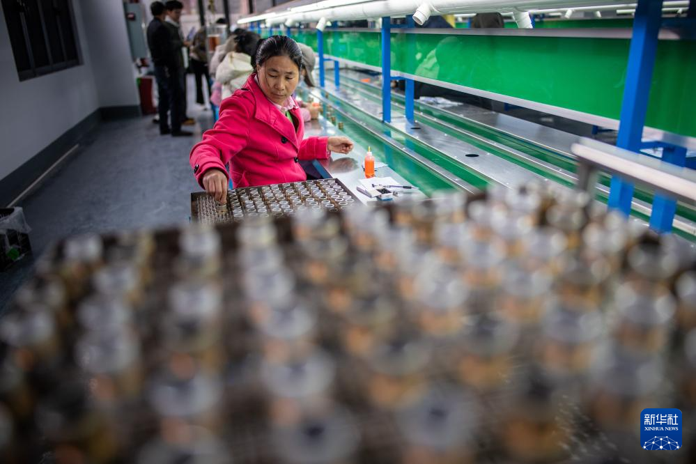 1月21日,云南省曲靖市会泽县钟屏街道居民在家门口的电子厂上班。(新华社记者 江文耀 摄)