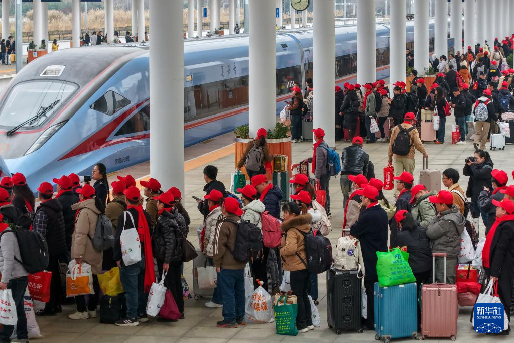 云南铁路抢抓春节后返岗务工“黄金时机”,通过开行务工专列“点对点”一站式输送外出务工人员,提供从“出家门”到“上车门”,再到“进厂门”的返岗体验。