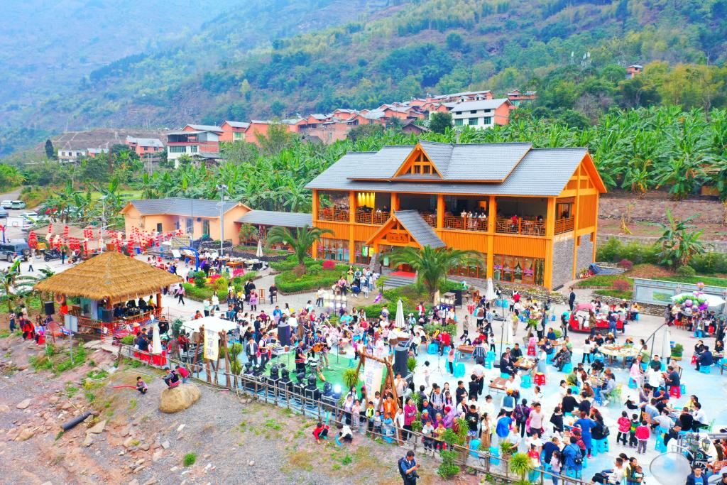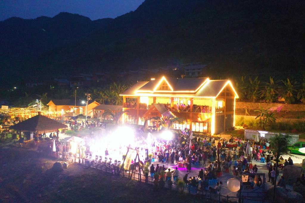 在徐鹏飞的建议下,林家坝引进了“金江号子”和“打铁花”两项省级非遗项目。每到周末,村民化身为船工和纤夫喊起金江号子,再现金沙江帆船航运的历史记忆。村庄办起啤酒音乐节,游客品美食,观看“打铁花”和烟花表演,围着燃烧的篝火载歌载舞,村庄的人气很快火了起来。