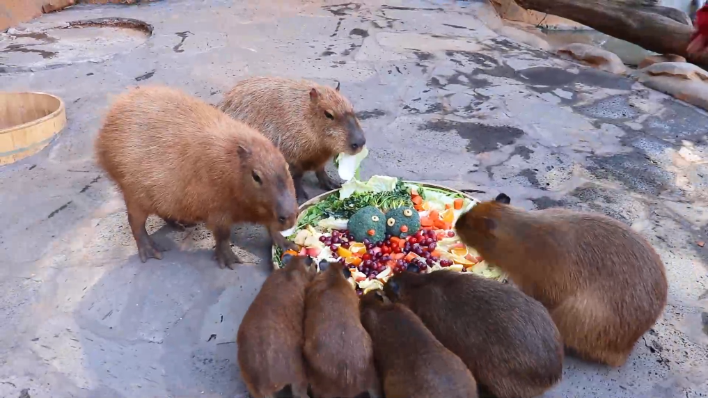 元宵佳节,南方有吃汤圆的民俗。在云南野生动物园里,工作人员用花椰菜、鱼腥草、苹果、橘子等果蔬,制作成花式汤圆形状,为动物朋友们带来特制的元宵节美食。
