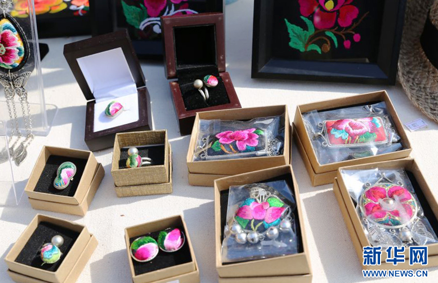 彝绣饰品(2月13日摄)。新华网 范芳钰 摄