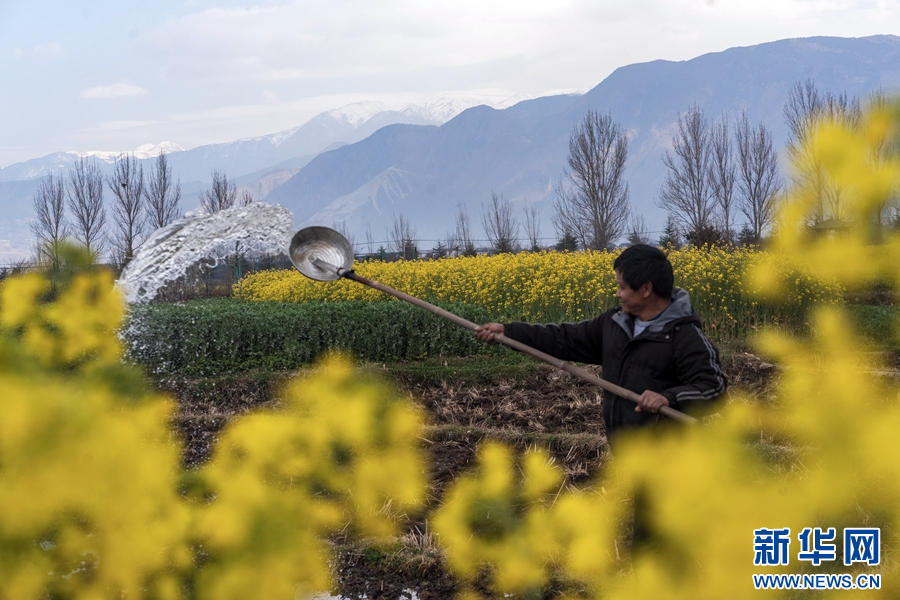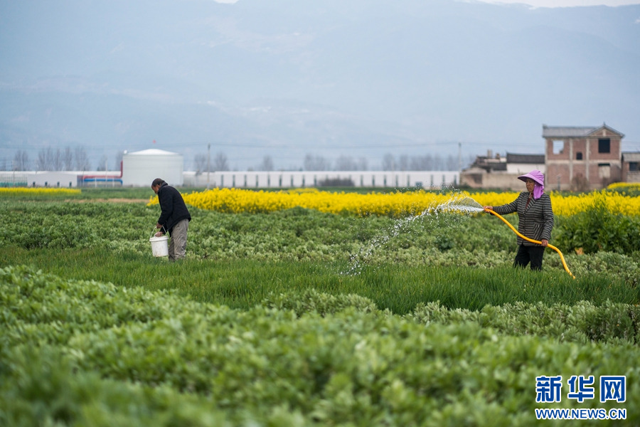 农户在洱源县茈碧湖镇的田间劳作(摄于2月16日)。新华网发(罗新才 摄)