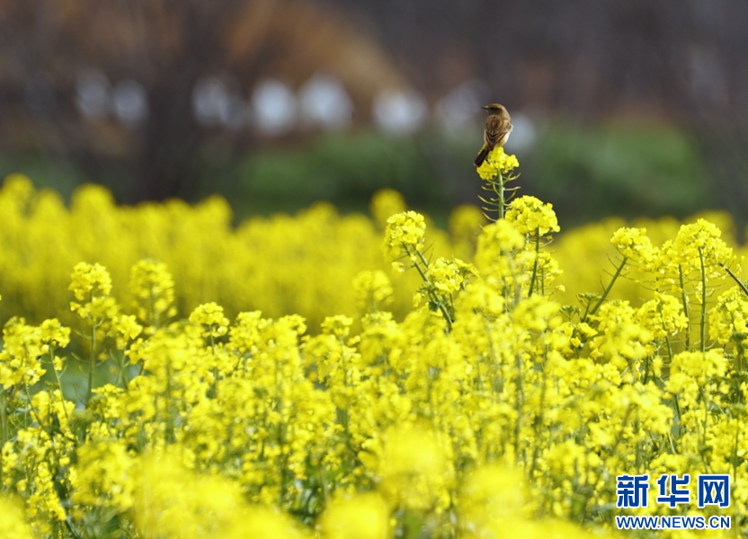 洱源县茈碧湖镇的油菜花田(摄于2月16日)。新华网发(罗新才 摄)