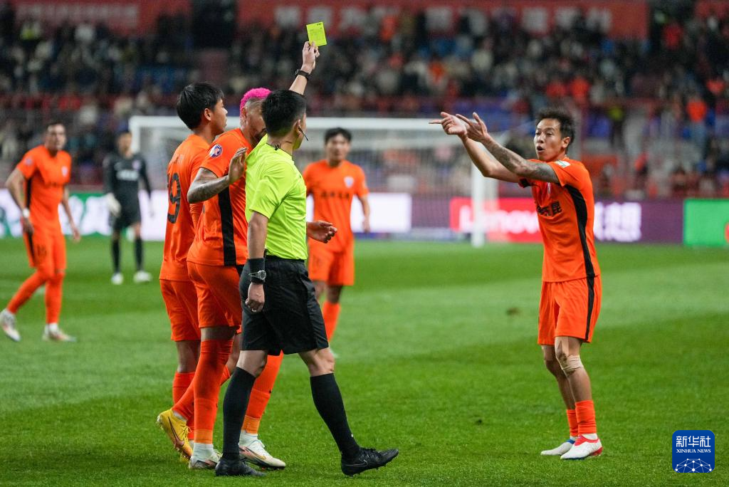 3月1日,云南玉昆队球员叶楚贵(右一)在比赛中被出示黄牌。新华社记者 陈欣波 摄