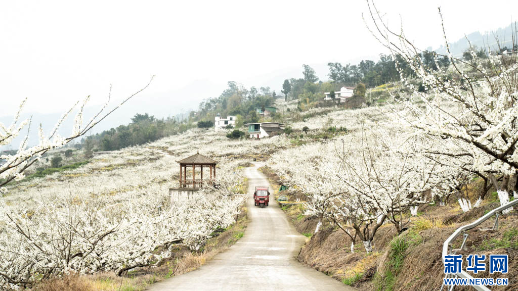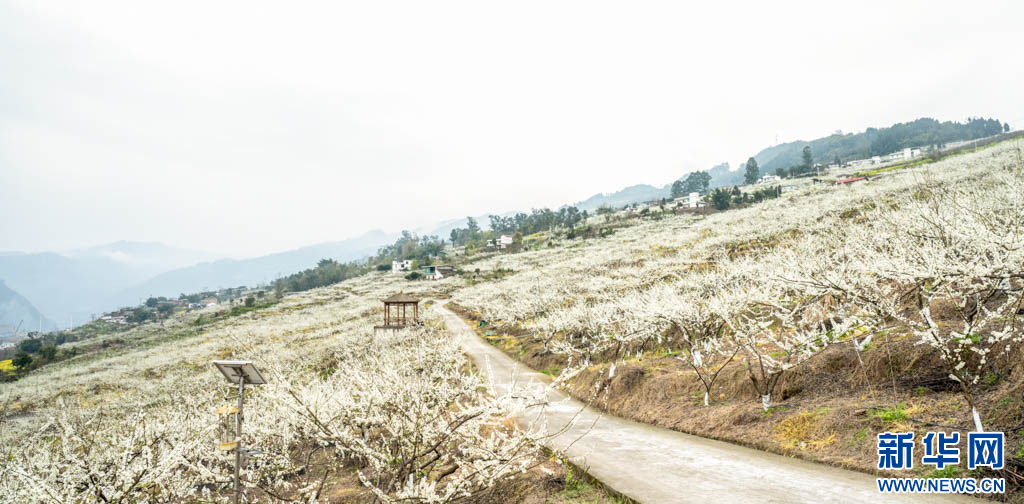 万亩李花迎春绽放(3月8日摄)。新华网发(曾三东 摄)