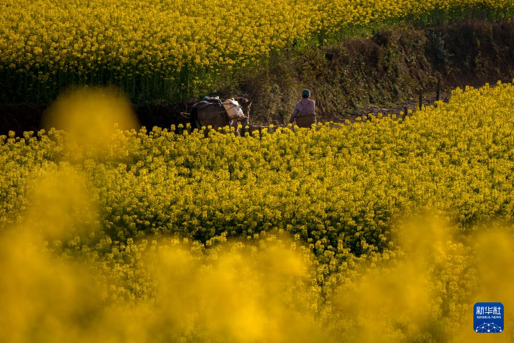 金浪翻涌间,错落分布的村寨若隐若现,与花海、山峦共同勾勒出一幅田园春景图,吸引国内外游客纷至沓来,感受春天的气息。