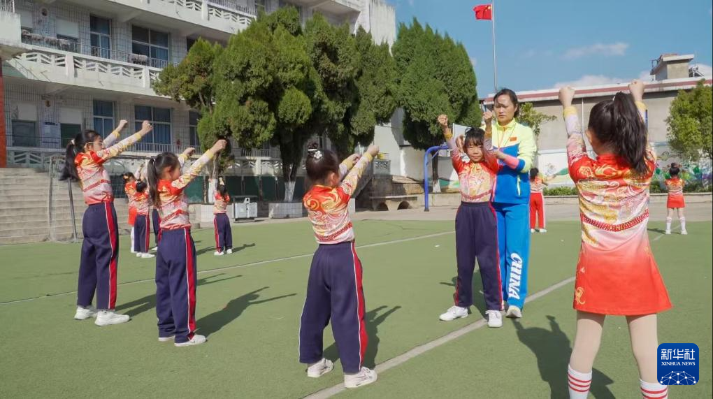湾塘小学的孩子们正在进行体育锻炼。新华社记者 江文耀 摄