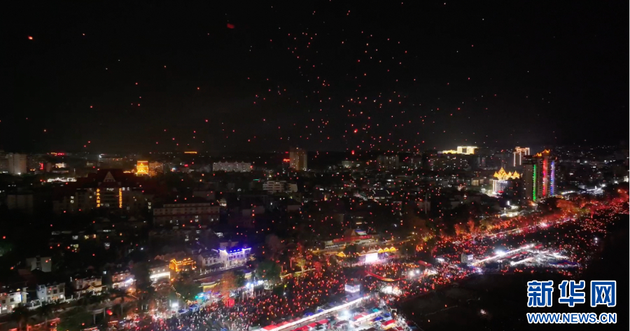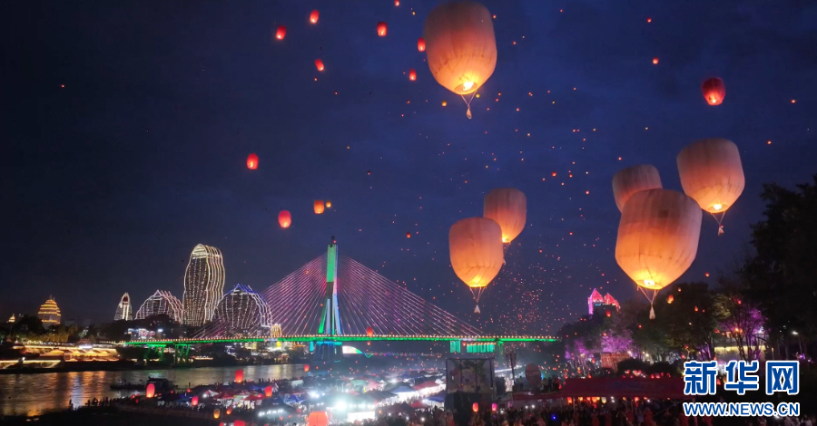 4月13日晚,云南省西双版纳傣族自治州景洪市在澜沧江畔举办了万人齐放孔明灯活动,共庆傣历1387年新年节。万盏孔明灯点亮了澜沧江畔的夜空,如萤火虫飞舞般璀璨,灯火承载着人们淳朴的心愿,随风飘向远方。这是澜沧江畔一年当中最美的夜晚,也是独属于西双版纳的浪漫。(完)(刘馨蔚 丁凝 和新兰)