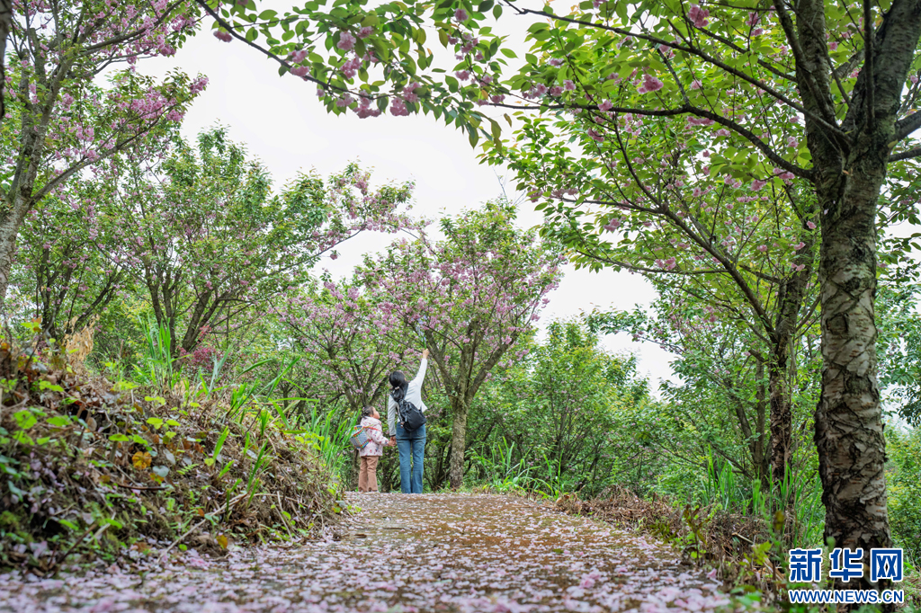 峰顶山乡村旅游示范点樱花绽放(4月12日摄)。新华网发(曾三东 摄)