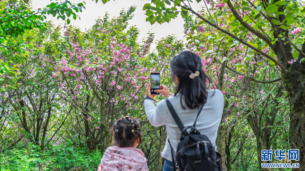 近日,云南省昭通市绥江县会仪镇峰顶山乡村旅游示范点樱花绽放,吸引众多游客前来踏青赏花,尽享春日美景。