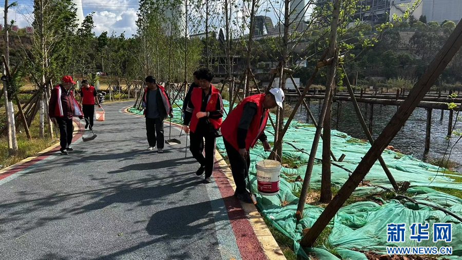 志愿者清除垃圾(4月16日摄)。新华网发(阳宗海融媒体中心 供图)