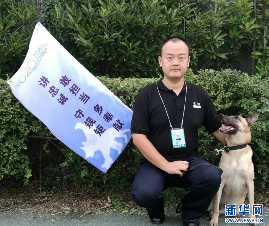 2018年,训导员宋春晖与警犬明拉缘在青岛上合峰会安保留影(资料图)。新华网发(保山市公安局供图)