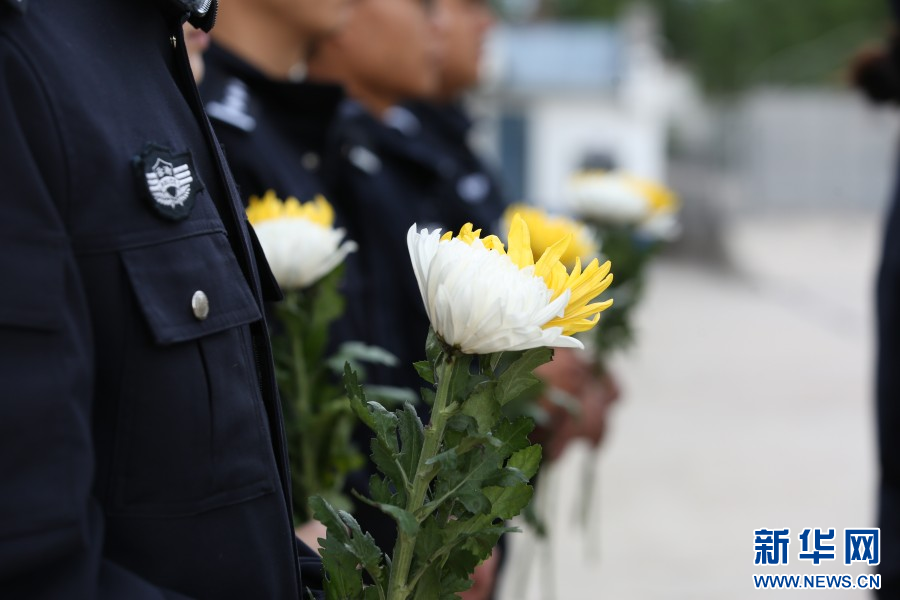 民警为警犬明拉缘立碑(2025年4月16日摄)。新华网发(保山市公安局供图)