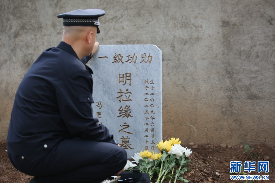 警犬明拉缘的墓碑(2025年4月16日摄)。新华网发(保山市公安局供图)
