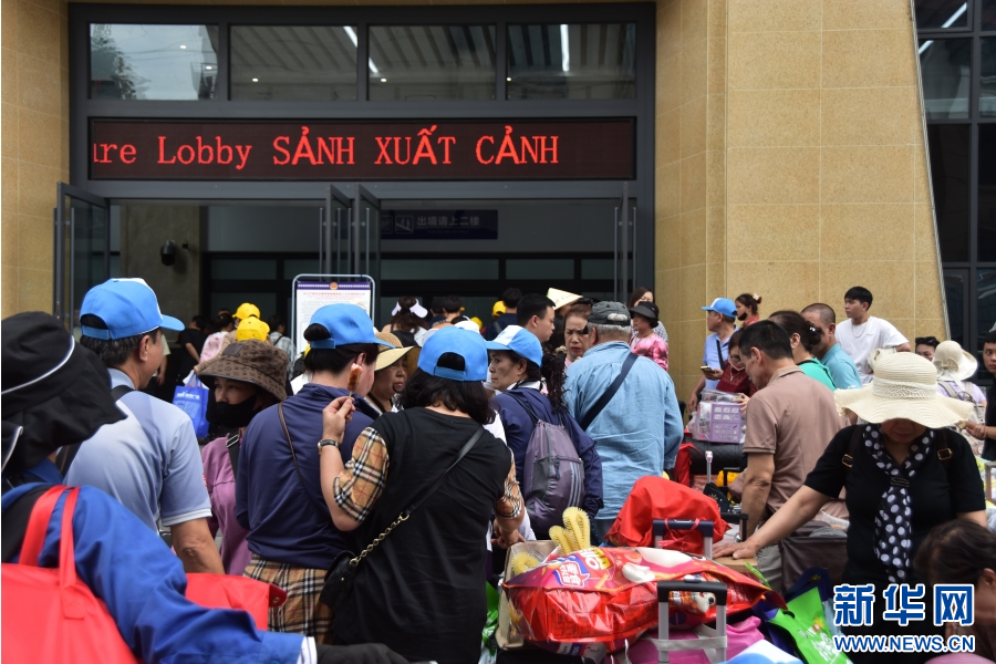 结束“中国游”的越南游客有序进入中国河口公路口岸南溪河联检大楼办理出境手续(5月2日摄)。新华网发(薛莹莹 摄)