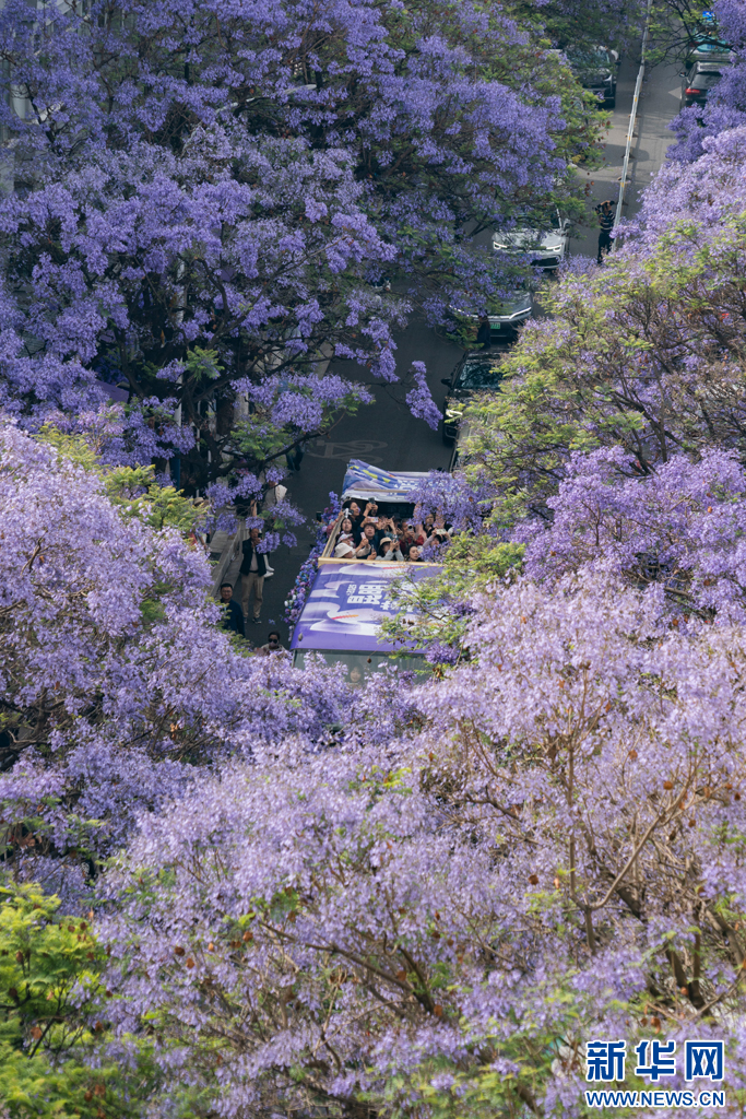 绽放的蓝花楹(5月1日摄)。新华网发(郑益 摄)