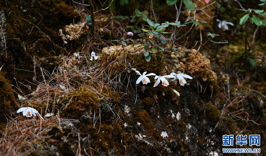 白花独蒜兰的微生境(4月21日)。新华网发(蒋宏 摄)