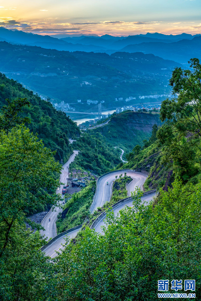 夕阳映照下蜿蜒山间的乡村公路(5月2日摄)。新华网发(曾三东 摄)