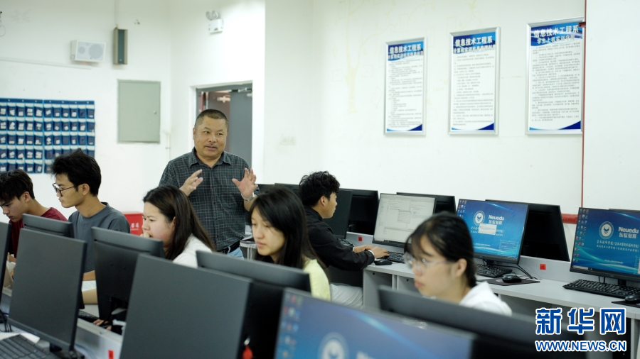 陶冠华指导学生熟悉课程内容(5月7日摄)。新华网发(李宗蓉 摄)