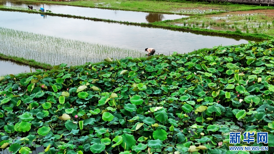 这是6月4日拍摄的云南省腾冲市西源街道马常村田野(无人机照片)。新华网发(赵辉 摄)