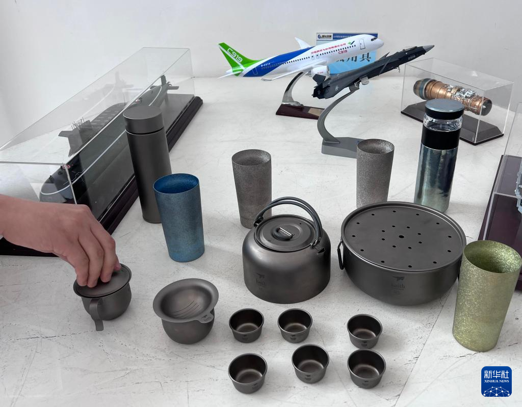 图为云南国钛金属股份有限公司展示的钛材料日用品(新华社记者张磊 摄)