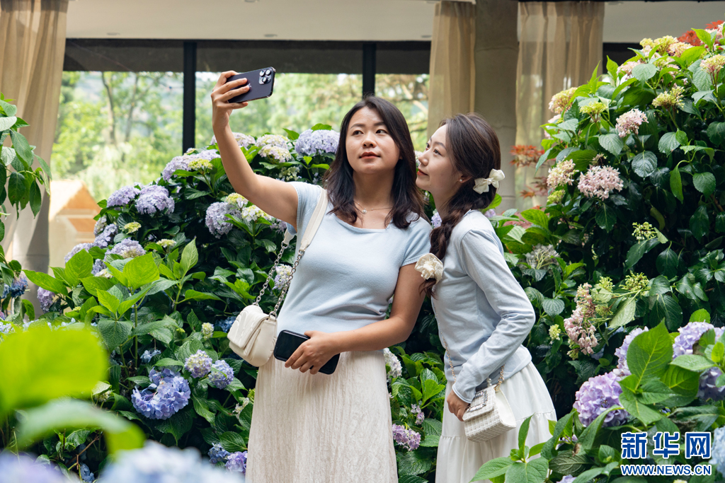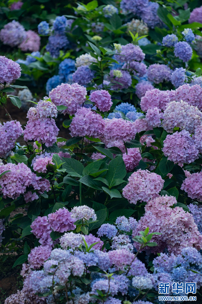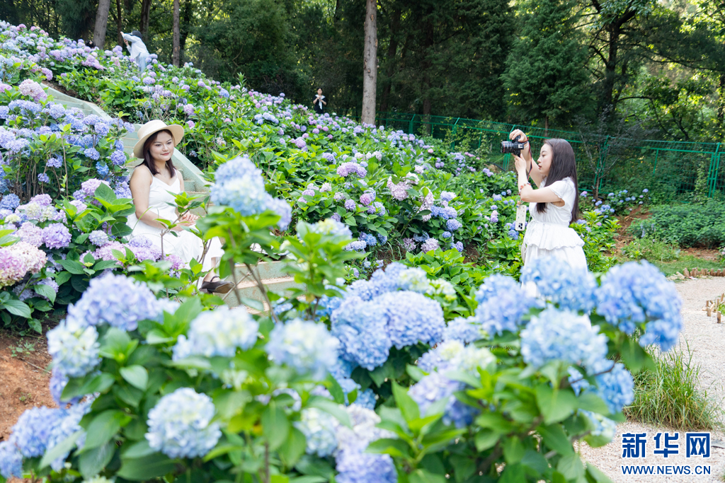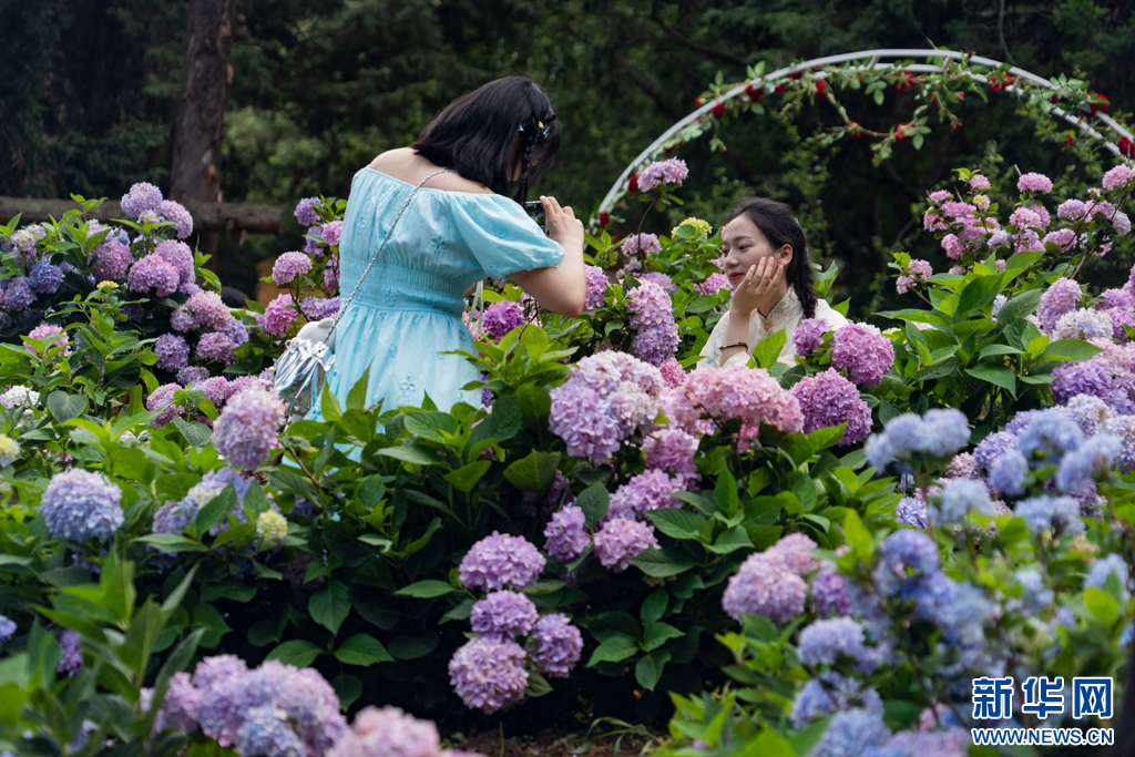 近日,云南省昆明市郊野公园内的绣球花进入盛花期,绣球花竞相绽放,为夏日增添了一抹清新浪漫。市民游客纷至沓来,或驻足赏花、或拍照留念,尽享自然之美。