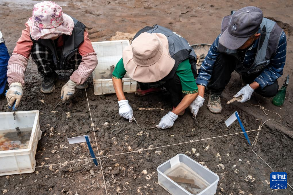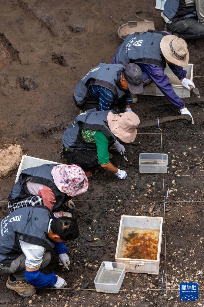 考古工作者在云南河泊所遗址现场进行清理发掘工作(2025年4月24日摄)。新华社记者 胡超 摄