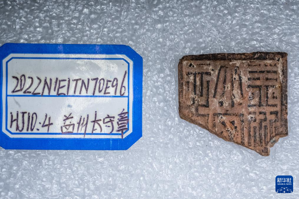云南省昆明市晋宁区河泊所遗址出土的官印封泥(2025年4月24日摄)。新华社记者 胡超 摄