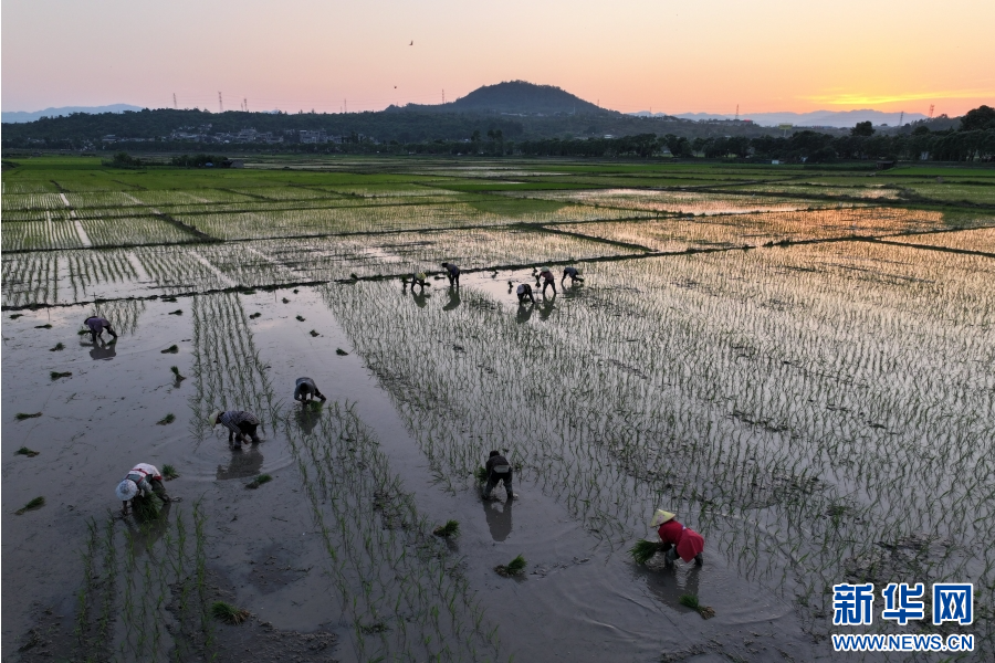 云南省腾冲市和顺镇,农人忙着插秧(6月15日摄)。新华网发(龚祖金 摄)