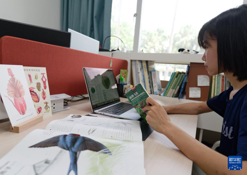 6月15日,工作人员在中国科学院西双版纳热带植物园环境教育中心设计鸟类科普课程。新华社记者 高咏薇 摄