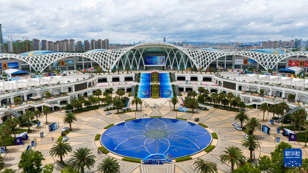 6月18日拍摄的第9届中国—南亚博览会举办地昆明滇池国际会展中心(无人机全景照片)。新华社发(彭奕凯摄)