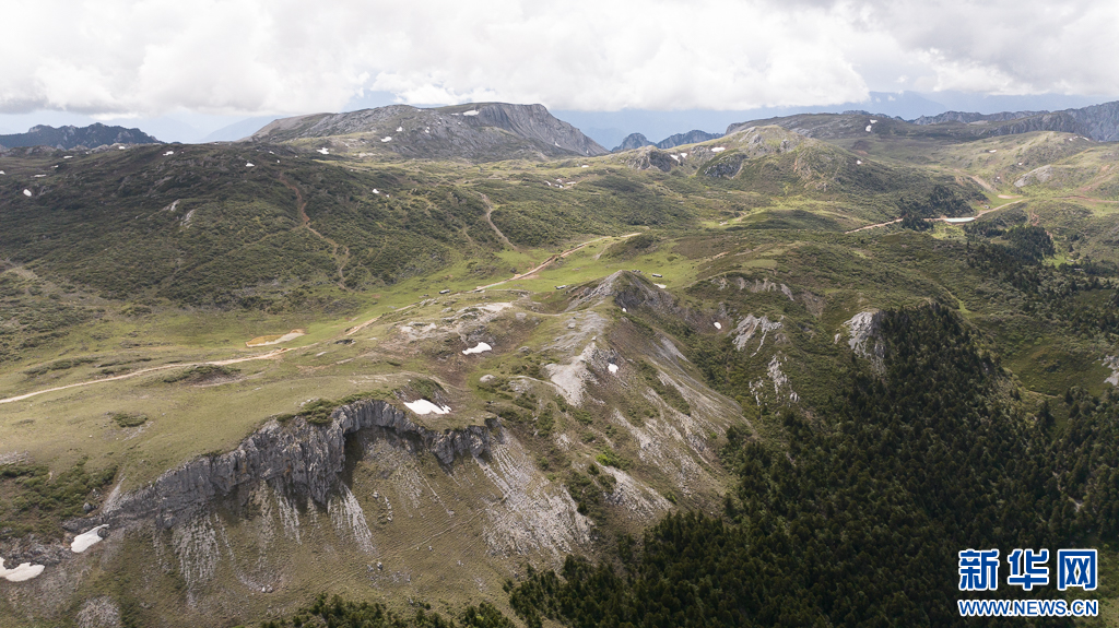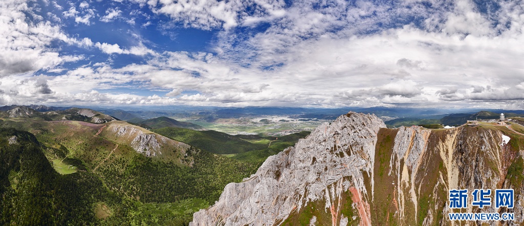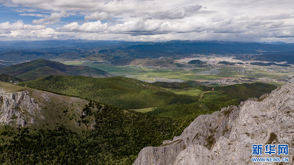 俯瞰石卡雪山及纳帕海(6月10日摄)。新华网发(刘东 摄)