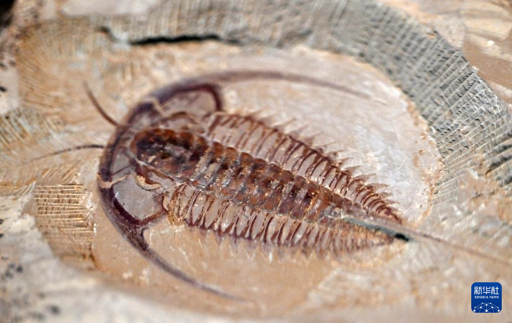 这是6月19日拍摄的“寒武纪的黎明—澄江生物群与生命多样性的起源”主题展上的一件古生物化石。新华社记者 赵子硕 摄