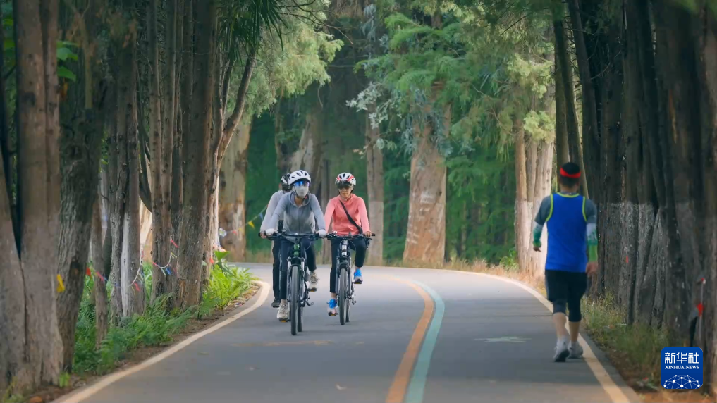 沿滇池绿道,人们或骑行漫步,或驻足赏景,或支帐露营、悠然小憩,人与自然和谐交融,共绘一幅清新惬意的滇池夏日画卷。