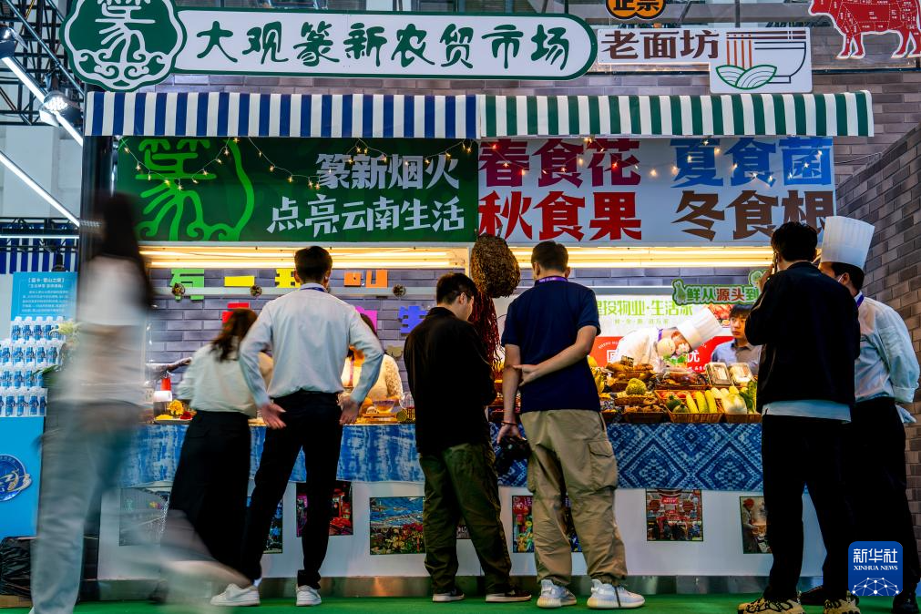 6月20日,观众在第9届中国—南亚博览会旅居云南馆选购特色食品。新华社记者 胡超 摄