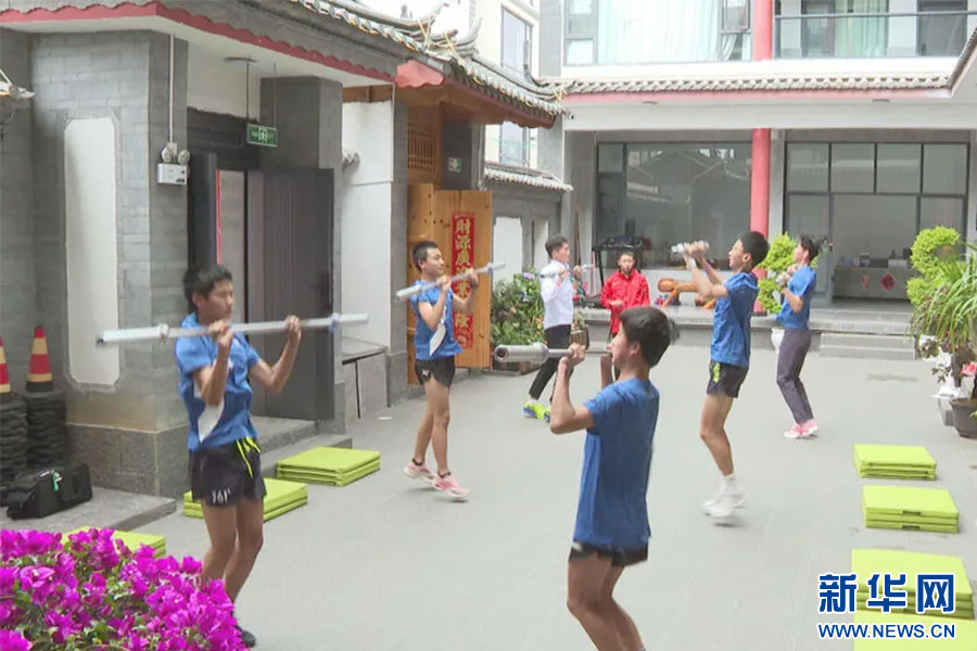 队员在睿星高原训练基地进行体能训练(资料图)。新华网发(丽江市融媒体中心 供图)