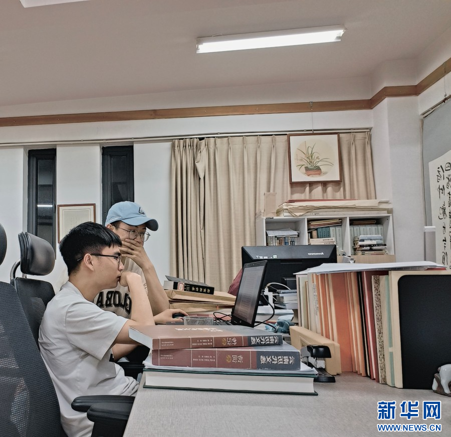 田吉禾正在和同学讨论问题(资料图)。新华网发(受访者供图)