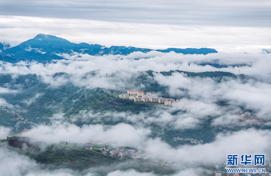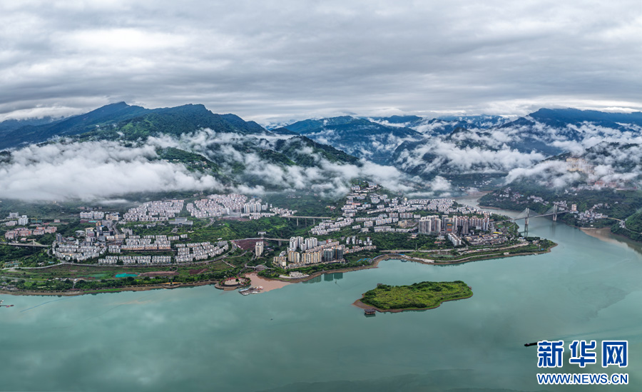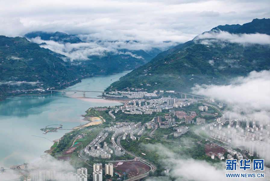 云雾缭绕的绥江县城(6月30日摄)。新华网发(曾三东 摄)