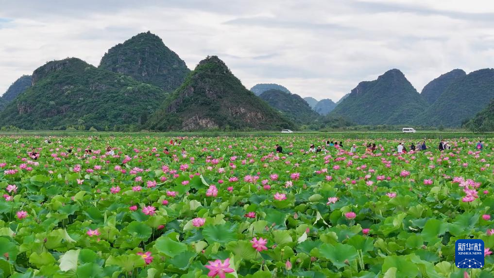 盛夏时节,云南省文山壮族苗族自治州丘北县普者黑风景区风光如画,万亩荷塘迎来盛放。