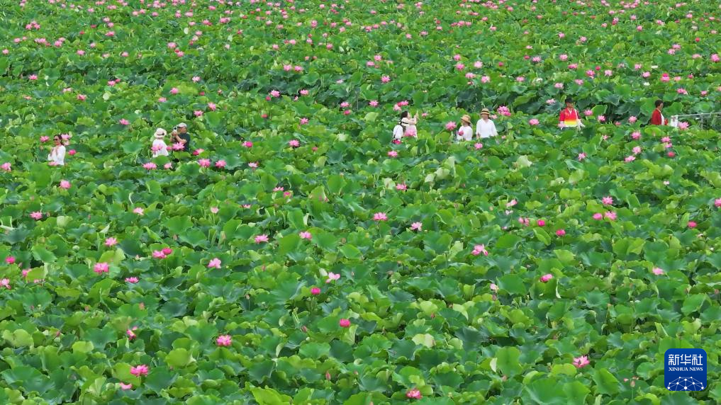 游人徜徉其间,或驻足赏景,或拍照留念,沉醉于这片夏日限定的荷海风光之中。