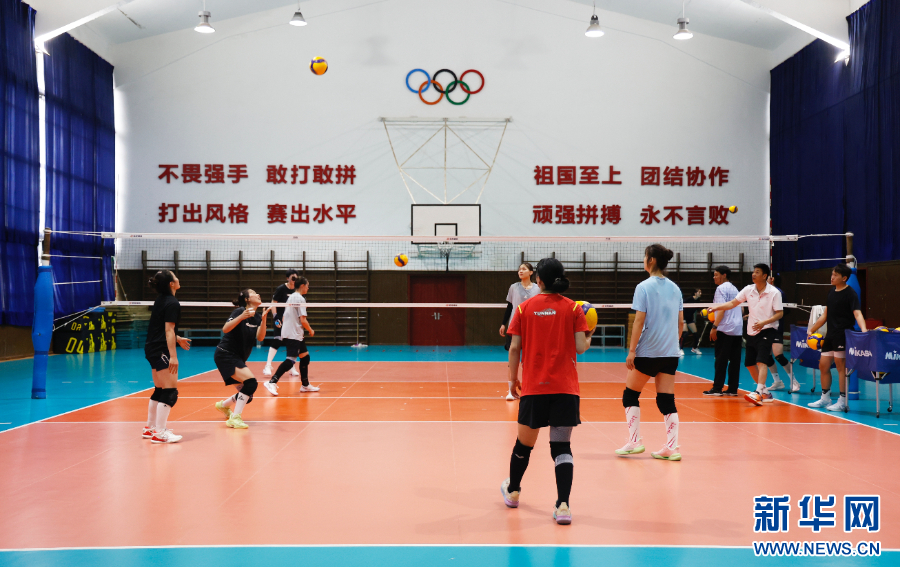 云南女排队员正在训练中(7月1日摄)。新华网发(丁凝 摄)