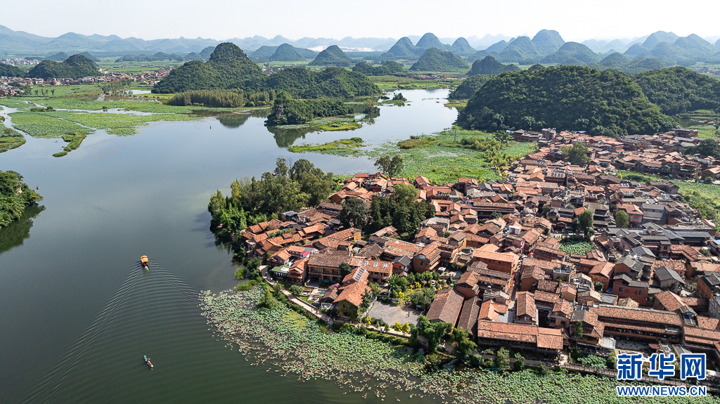 航拍视角下的普者黑景区局部(7月18日摄)。新华网发(刘东 摄)