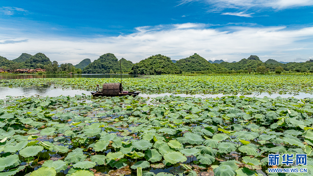 暑假期间,云南康旅集团运营的普者黑景区内,荷花竞相绽放,游客乘舟穿行其间,形成了一幅绝美的画卷。