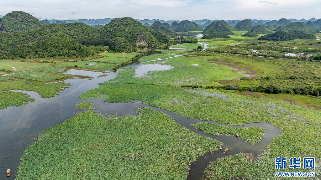 航拍视角下的普者黑景区局部(7月19日摄)。新华网发(刘东 摄)