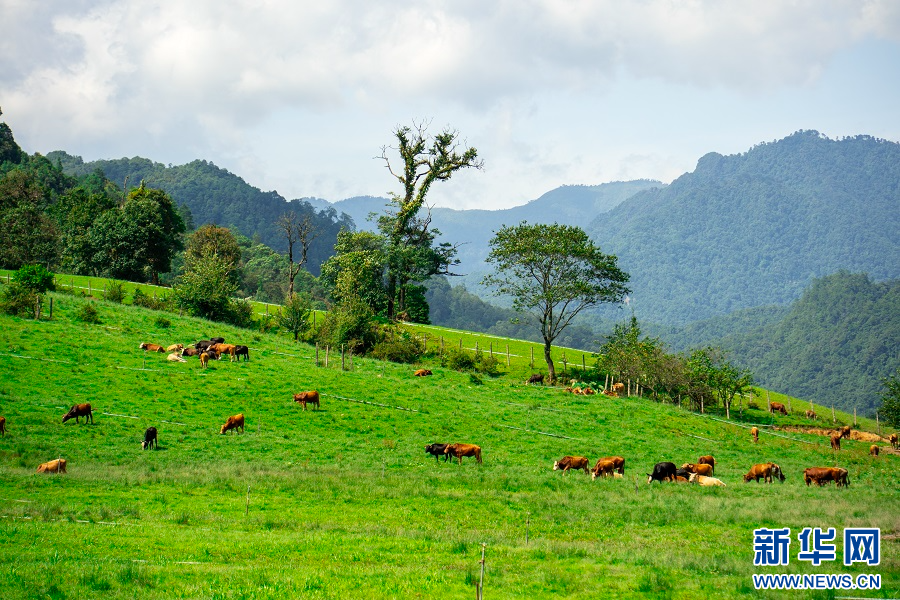 盛夏时节,航拍云南省腾冲市明光镇,广袤的大竹坝草甸上,牛羊漫步其间,风景如画。(完)