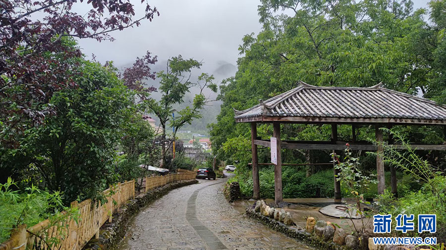 雨后的国门新村,道路更显整洁,两旁的沟渠里清泉汩汩流淌,保留传统风貌的民居与篱笆院落、古树相得益彰,与曾经村民口中的“黑泥塘”已迥然不同。